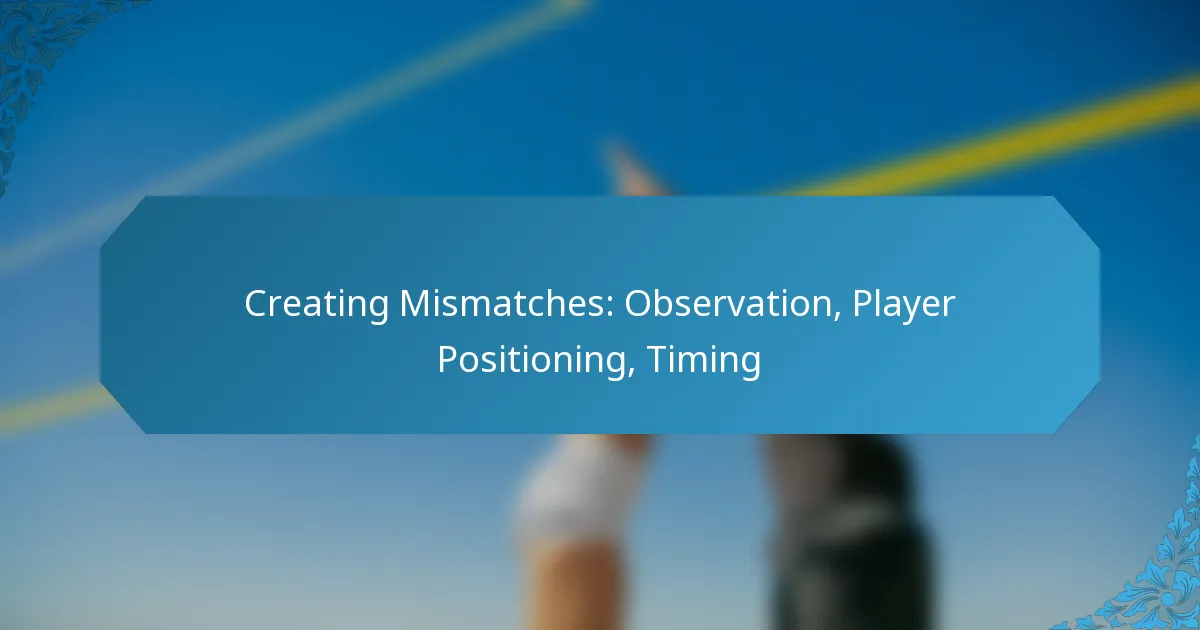 Creating mismatches in competitive environments is essential for gaining a strategic advantage over opponents. By focusing on observation, player positioning, and timing, teams can identify and exploit disparities that lead to scoring opportunities. Effective use of these components not only enhances overall performance but also capitalises on weaknesses in the opposing team.