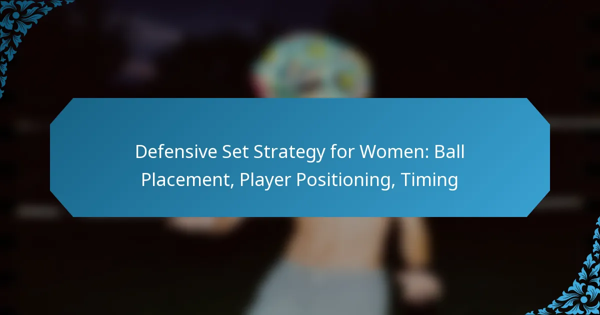 A defensive set strategy for women in sports emphasises the importance of ball placement, player positioning, and timing to effectively counter opponents’ plays. By strategically organising players and controlling the ball, teams can enhance their defensive capabilities and create opportunities to disrupt the opposition’s scoring attempts. Mastering these elements is essential for maintaining control of the game and ensuring a solid defence.